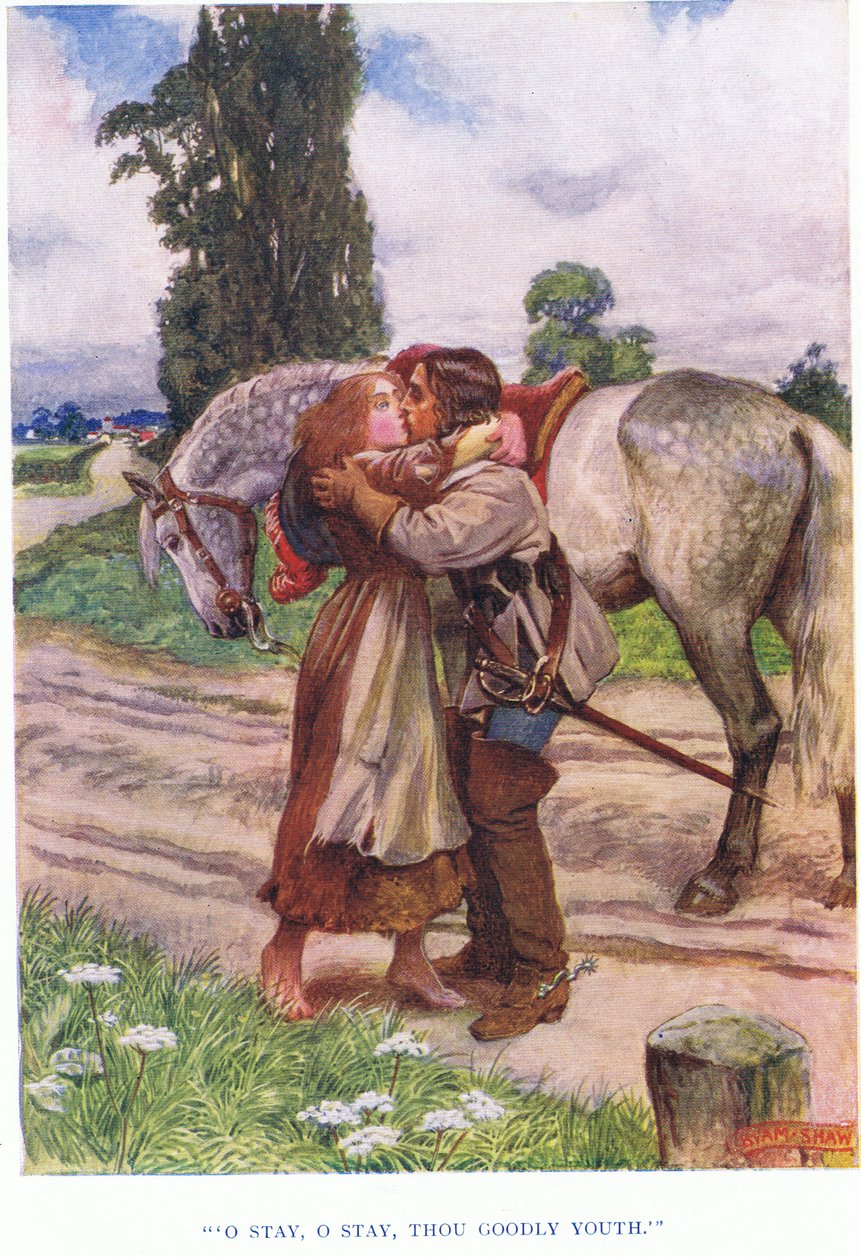 poetry · ballads · costumes · love · maiden · daughter · lover · horse · embrace · Private Collection / Bridgeman Images