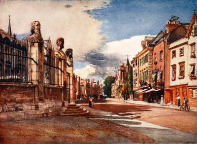 pedestrians · bicycle · university of oxford · c20th · english architecture · street scene · daily life scene · Private Collection / Bridgeman Images