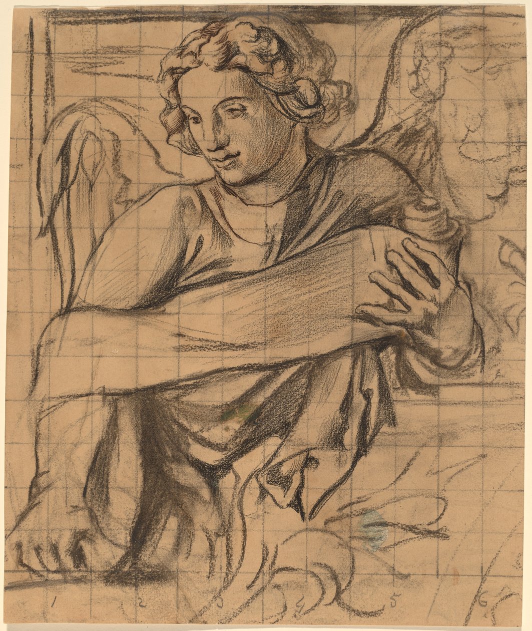 charcoal, graphite, and pen and brown ink, squared with graphite