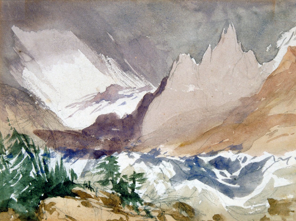 england · arts · painting · mountain · mountains · mountain range · peak · country · alps · alpine · valley · british · geography · english · color · colour · glacier · summit · location · victorian · century · britain · the alps · 19th century · nineteenth century · guildhall library art gallery · geographical feature · watercolour · landscape · john ruskin · ruskin · john · Guildhall Art Gallery (City of London)/Heritage Images |