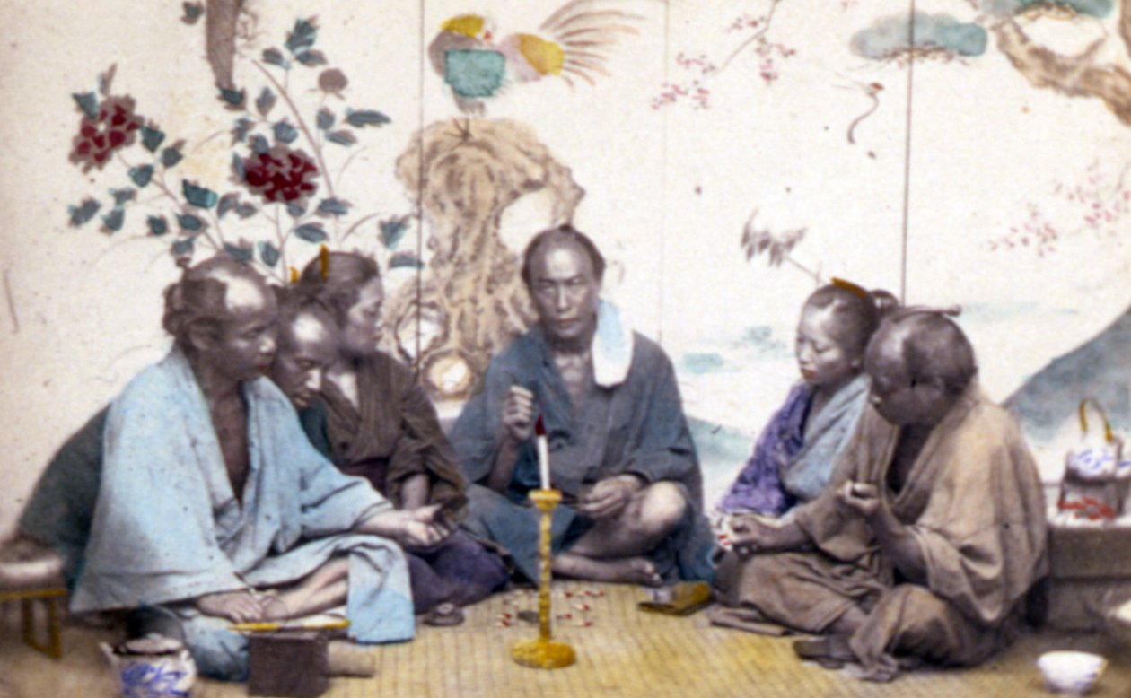 photographic print · hand-coloured · male · group · japanese · japan · woman · women · female · daily life · screen · candle · 0 / Bridgeman Images |
