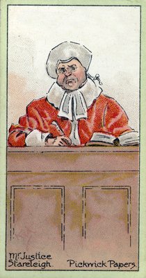 male · portrait · full length · dickensian · victorian · literature · literary · stareleigh · justice stareleigh · judge · presiding · lawsuit · robes · pickwick papers · vintage card · card · Private Collection / Bridgeman Images