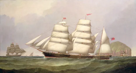19th century · boat · transport · coast · navy · army · ship · painting · lighthouse · sailing boat · · National Maritime Museum, London, UK / Bridgeman Images