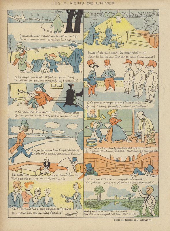 le rire · magazine · humour · humorous · comic · funny · amusing · satire · satirical · france · french · cartoon · cartoons · caricature · caricatures · social · pleasures · winter · pleasure · comic strip · Private Collection / Bridgeman Images · / Look and Learn |