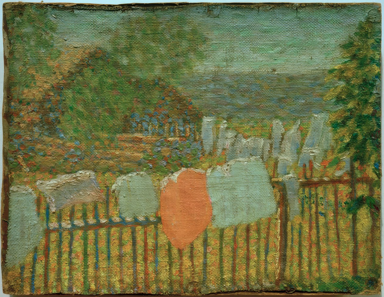 architecture · architecture presentation · farmhouse · gartenzaun · house · impressionism · turn of the century · landscape · russian · ukrainian · linen · clothesline · tumble dry · fence · technology · painting · painting · canvas · Without · title · 1904 · Thessaloniki, State Museum Of Contemporary Art / akg-images |