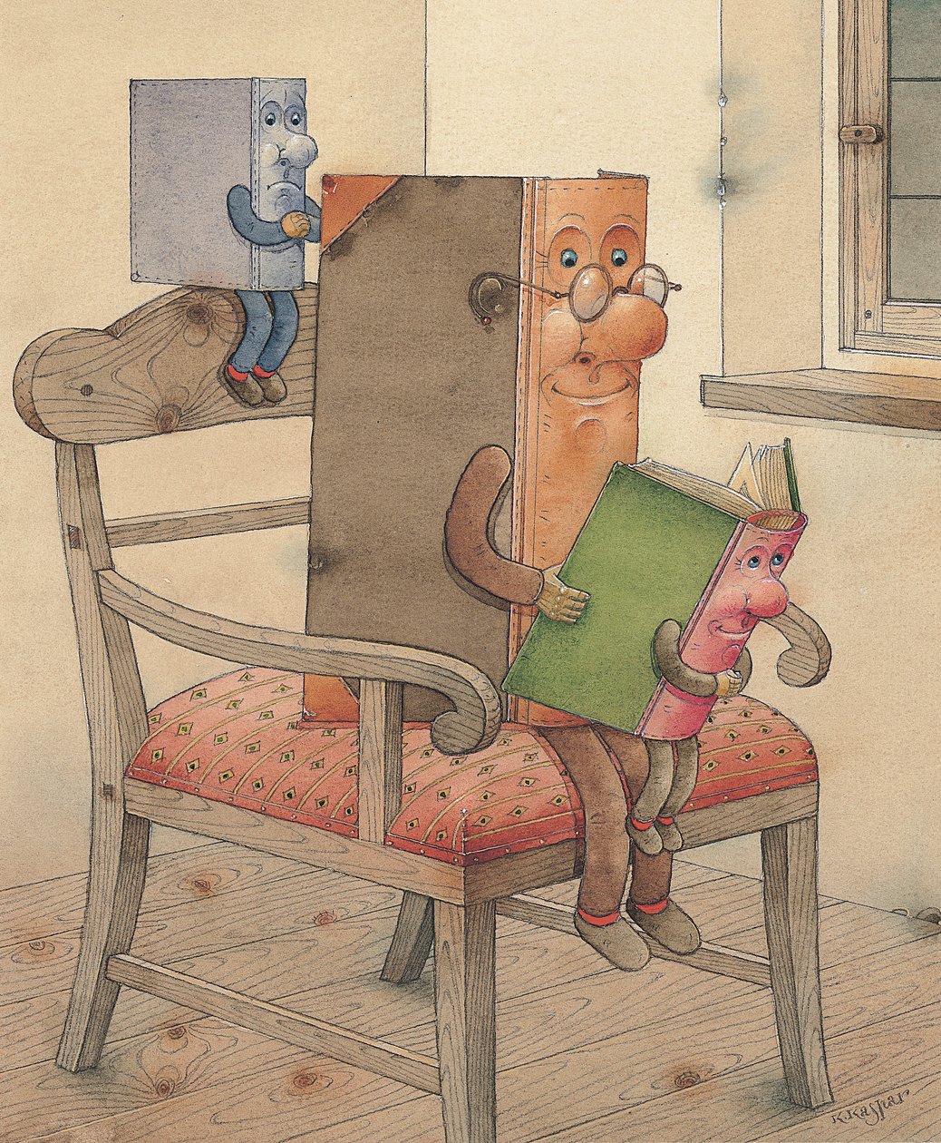 book · chair · interior · childrens illustration · fantasy · anthropomorphic · reading · spectacles · read · education · learning · spod · bookworm · naive · Private Collection / Bridgeman Images |