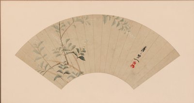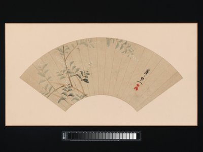 Undated · folding fan mounted as an album leaf; ink and color on paper, framed