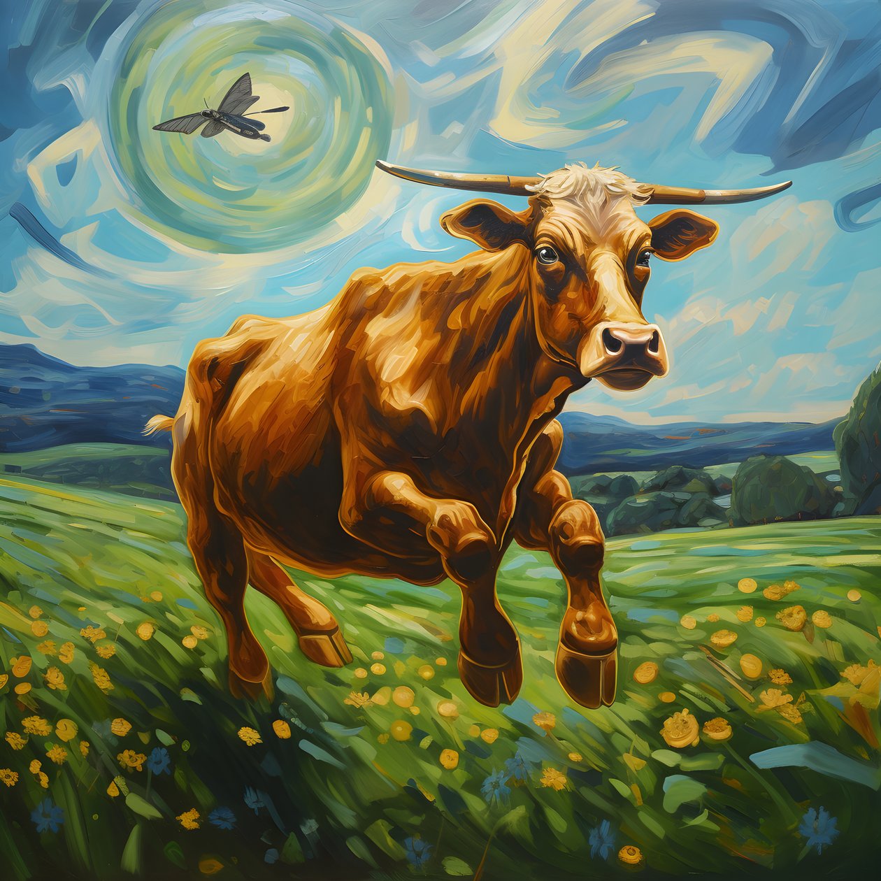 Cow Flying Over a Green Meadow 1(Kuh fliegt über eine grüne Wiese 1)Kurt Heppke |