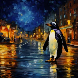 A Penguin in a Suit Walks Down the Street 2(Ein Pinguin im Anzug laeuft die Straße entlang 2)Kurt Heppke |