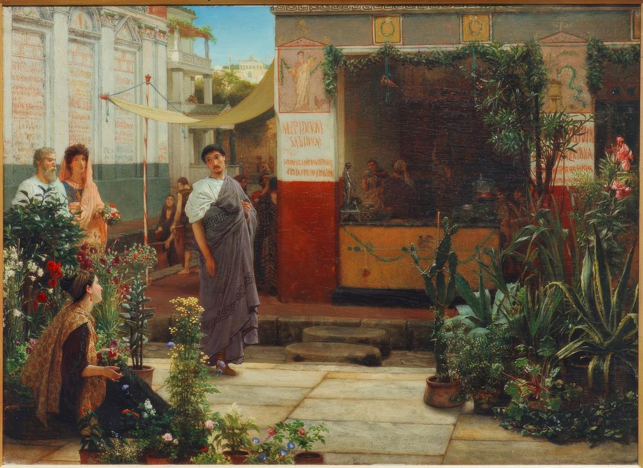 flower market · english · history · trade · trade · trade · history painting · roman · empire · salon painting · street trade · street scene · scene · victorian · wine trade · geography · pompeii · rome · technique · painting · painting · / akg-images