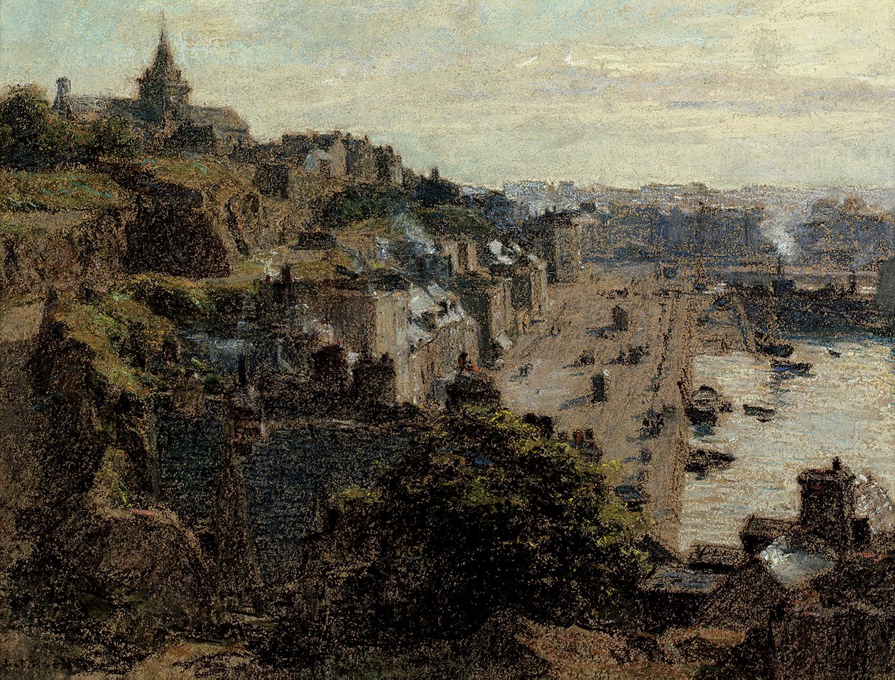 city · urban · aerial view · morning · study · drawing · french · sketch · town · seaside · coastal · coast · granville · france · Private Collection / Bridgeman Images |