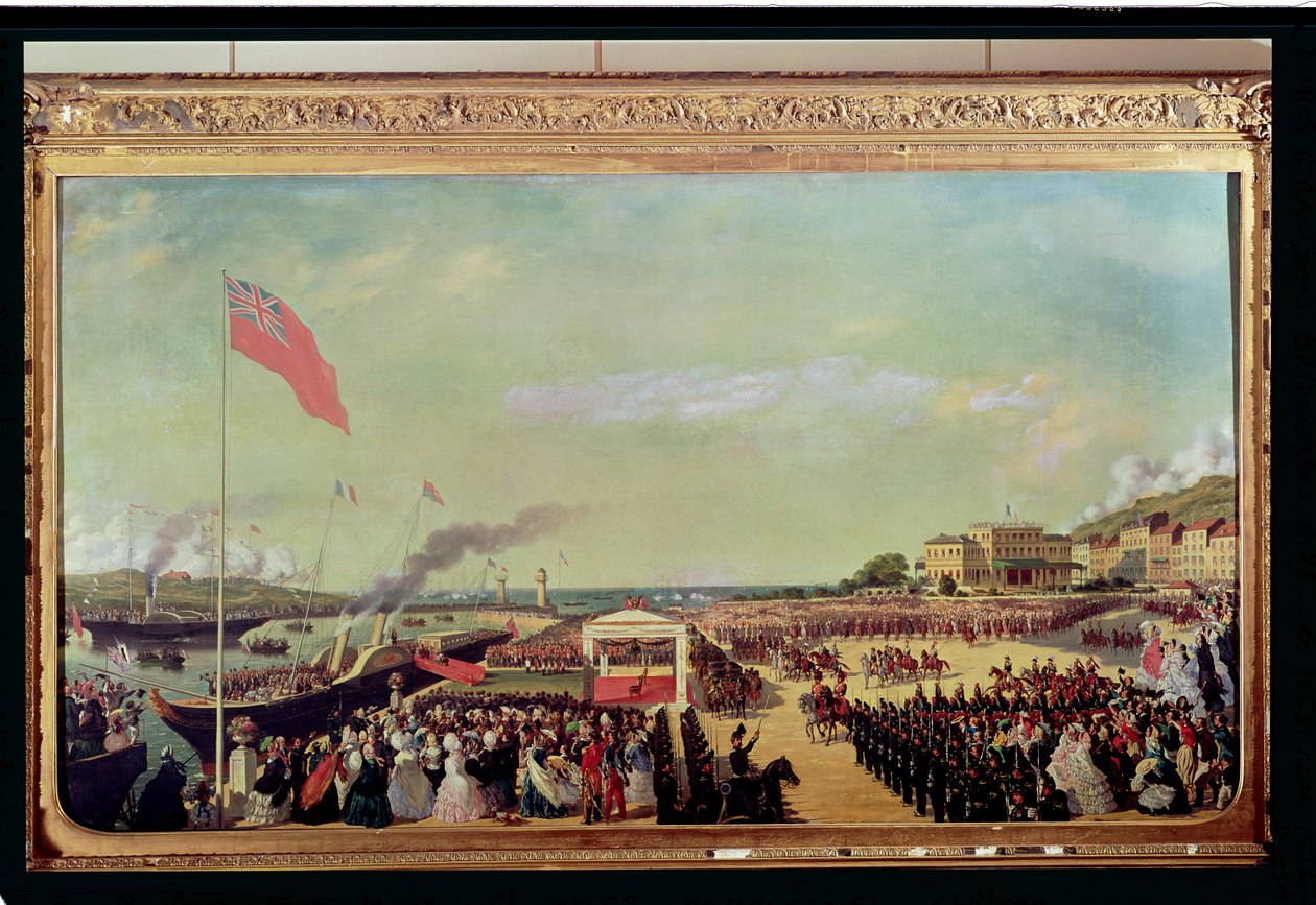 Napoleon III Welcoming Queen Victoria at the Port of Boulogne, 18th August 1855(Napoleon III (1808-73) Welcoming Queen Victoria (1819-1901) at the Port of Boulogne, 18th August 1855, 1856 )Louis Armand |