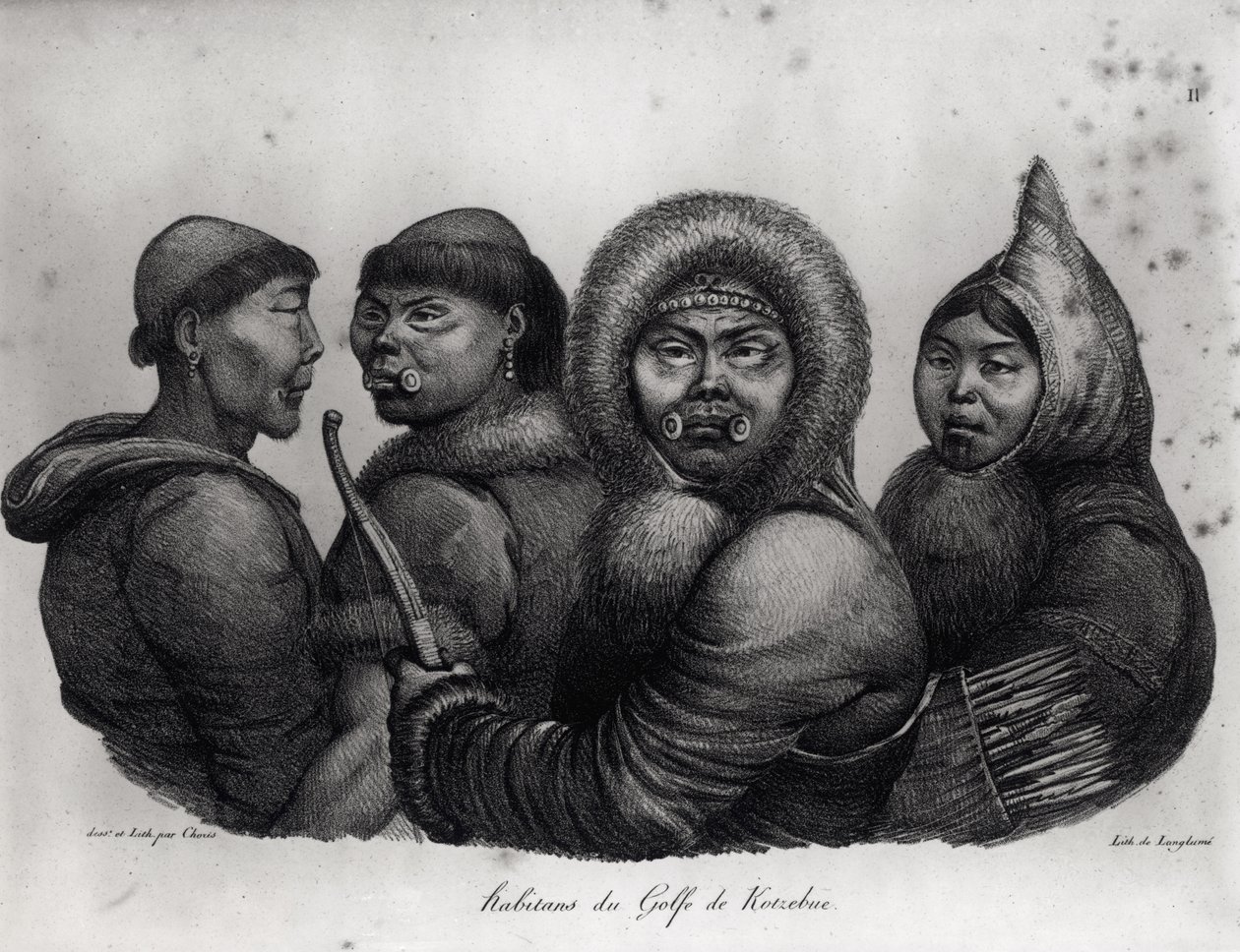 Inhabitants of the Gulf of Kotzebue, from 'Voyage Pittoresque autour du Monde'(Inhabitants of the Gulf of Kotzebue, from 'Voyage Pittoresque autour du Monde', engraved by Langlume (fl.1822-24) )Ludwig Choris |