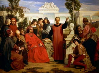 Birthday and parentalia of Plato, celebrated at Villa di Careggi by Lorenzo Magnificent(Birthday and parentalia of Plato (428 BC-348 or 427 or 347 BC), celebrated at Villa di Careggi by Lorenzo Magnificent)Luigi Mussini |