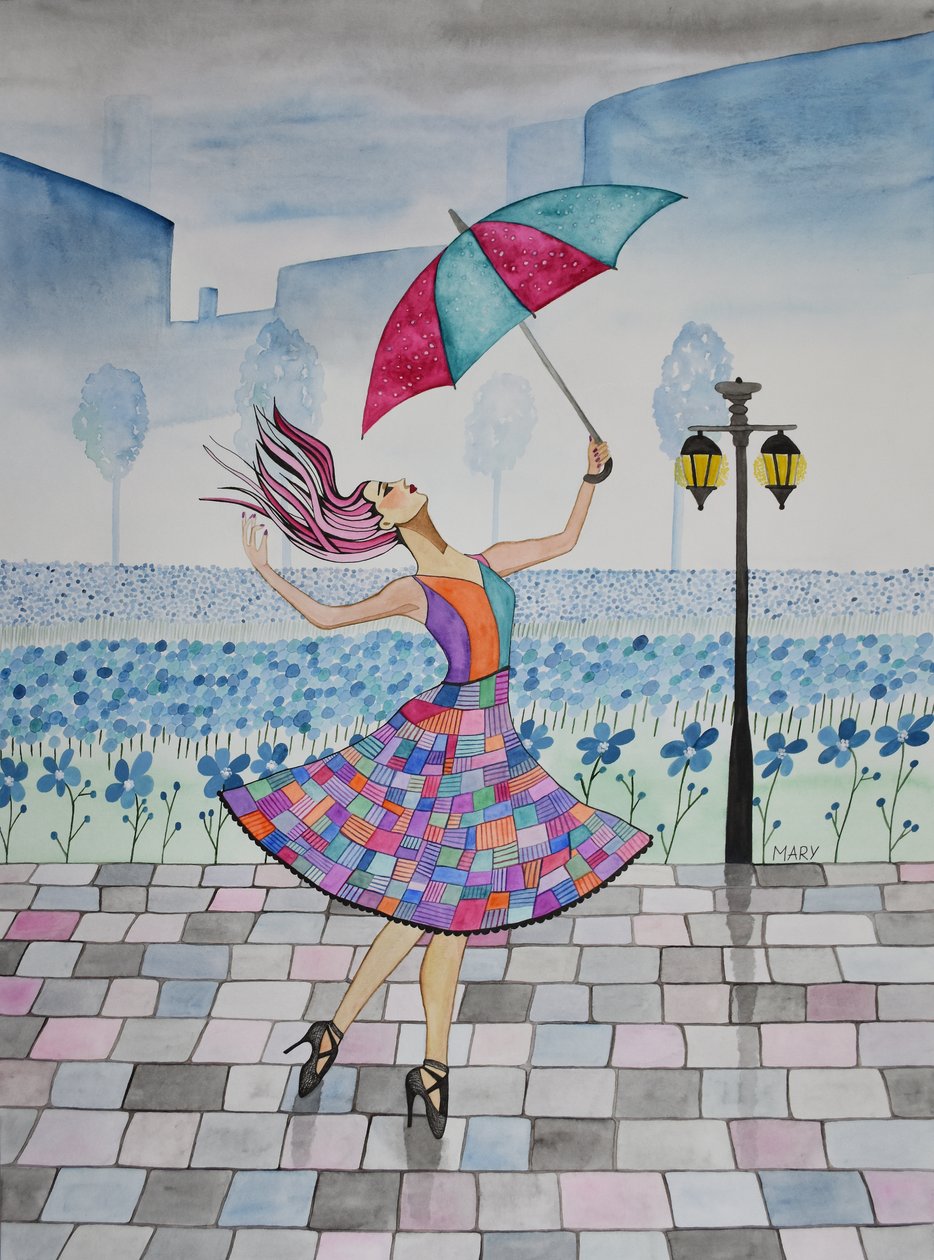 She Dances in the Rain(Sie tanzt im Regen)Marys Watercolors |