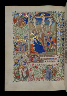 Hours of Charles the Noble, King of Navarre 1361-1425: fol. 185r, Crucifixion, c. 1405(Hours of Charles the Noble, King of Navarre 1361-1425: fol. 185r, Crucifixion, c. 1405. )Master of the Brussels Initials and Associates |