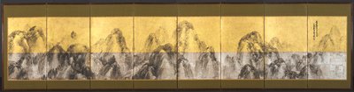 Undated · Eight-panel folding screen, ink with gold and silver foil on paper