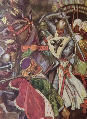 Turn, False Hearted Templar! Let Go Her Whom Thou Art Unworthy to Touch!, illustration from 'Ivanhoe For Boys and Girls', retold by Alice Jackson, pub. 1924(Turn, False Hearted Templar!. Let Go Her Whom Thou Art Unworthy to Touch!., illustration from 'Ivanhoe For Boys and Girls', retold by Alice Jackson, pub. 1924 )Maurice Greiffenhagen |