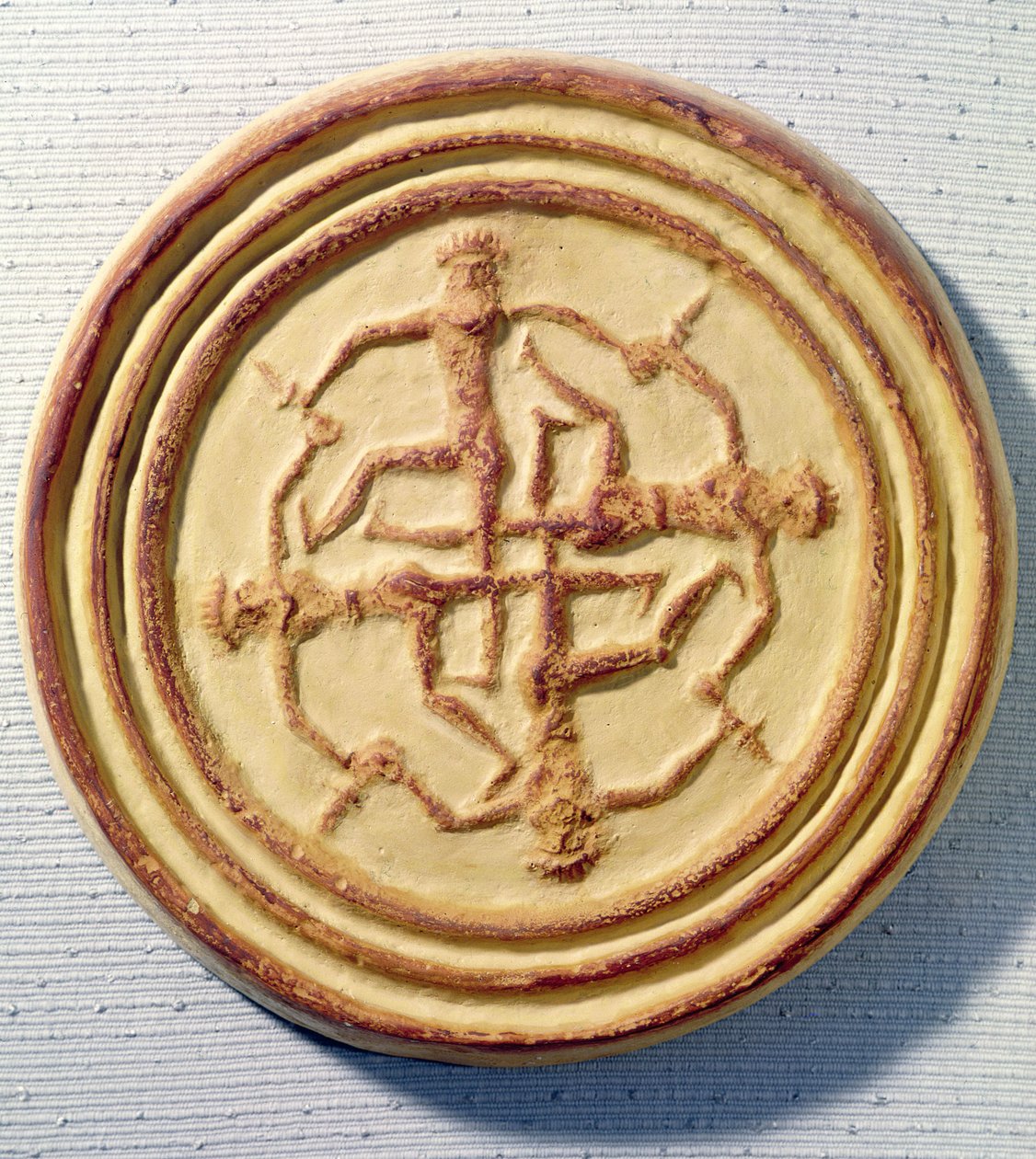 ronde de quatre guerriers · warrior · soldier · circular · syrian · babylonian · artefact · artifact · mesopotamia · terracotta · National Museum, Aleppo, Syria / Bridgeman Images |