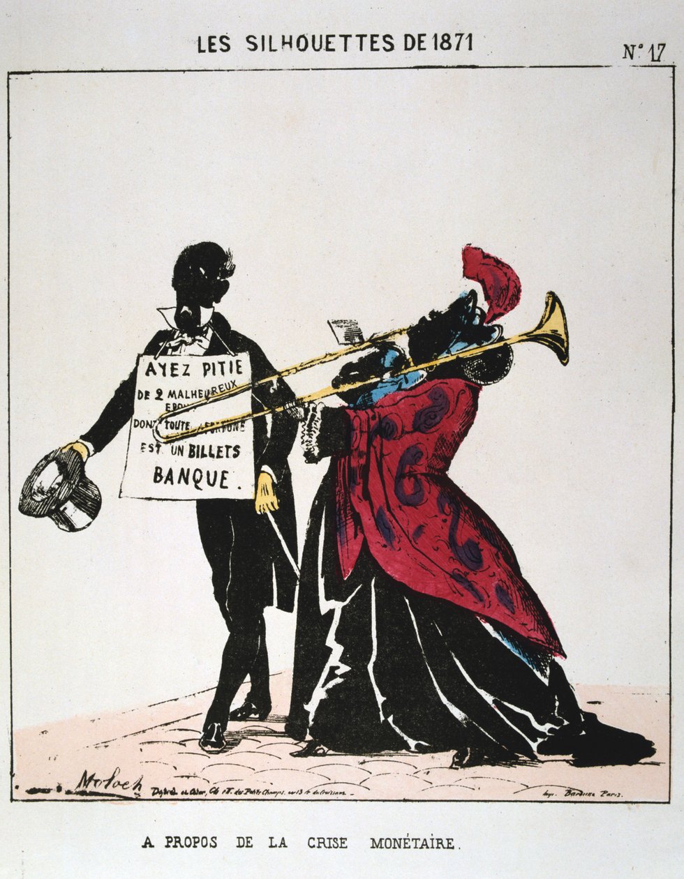 silhouette · female · women · woman · people · male · music · arts · politics · country · french · france · finance · color · colour · location · century · musical instrument · lady · trombone · cartoon · 19th century · 1870s · nineteenth century · art media · paris commune · caricature · satire · moloch · Art Media-Private Collection/Heritage Images |