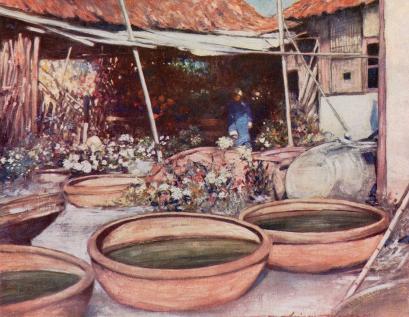 watercolours · travel · nursery garden · china · Private Collection / Bridgeman Images · / Look and Learn