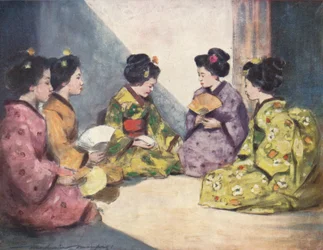 japan · japanese · early · 20th century · picturesque · watercolours · portrait · asian · asia · exotic · butterflies · madam butterfly · girls · prostitutes · prostitution · geisha · Private Collection / Bridgeman Images · / Look and Learn