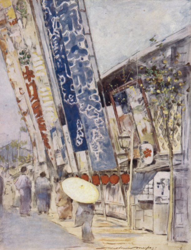 japan · japanese · early · 20th century · picturesque · watercolours · portrait · asian · asia · exotic · In Theatre Street · Private Collection / Bridgeman Images · / Look and Learn |