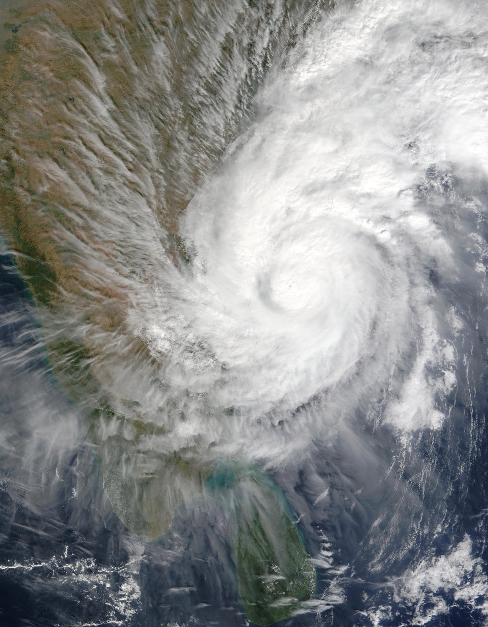 Southeast Indian State of Andhra Pradesh raked by Tropical Cyclone 03B in early 16 December 2003. The storm's winds, heavy rains, and cool temperatures forced nearly 20,000 people to flee their homes(Southeast Indian State of Andhra Pradesh raked by Tropical Cyclone 03B in early 16 December 2003. The storms winds, heavy rains, and cool temperatures, forced nearly 20,000 people to flee their homes.)National Aeronautics and Space Administration National Aeronautics and Space Administration |