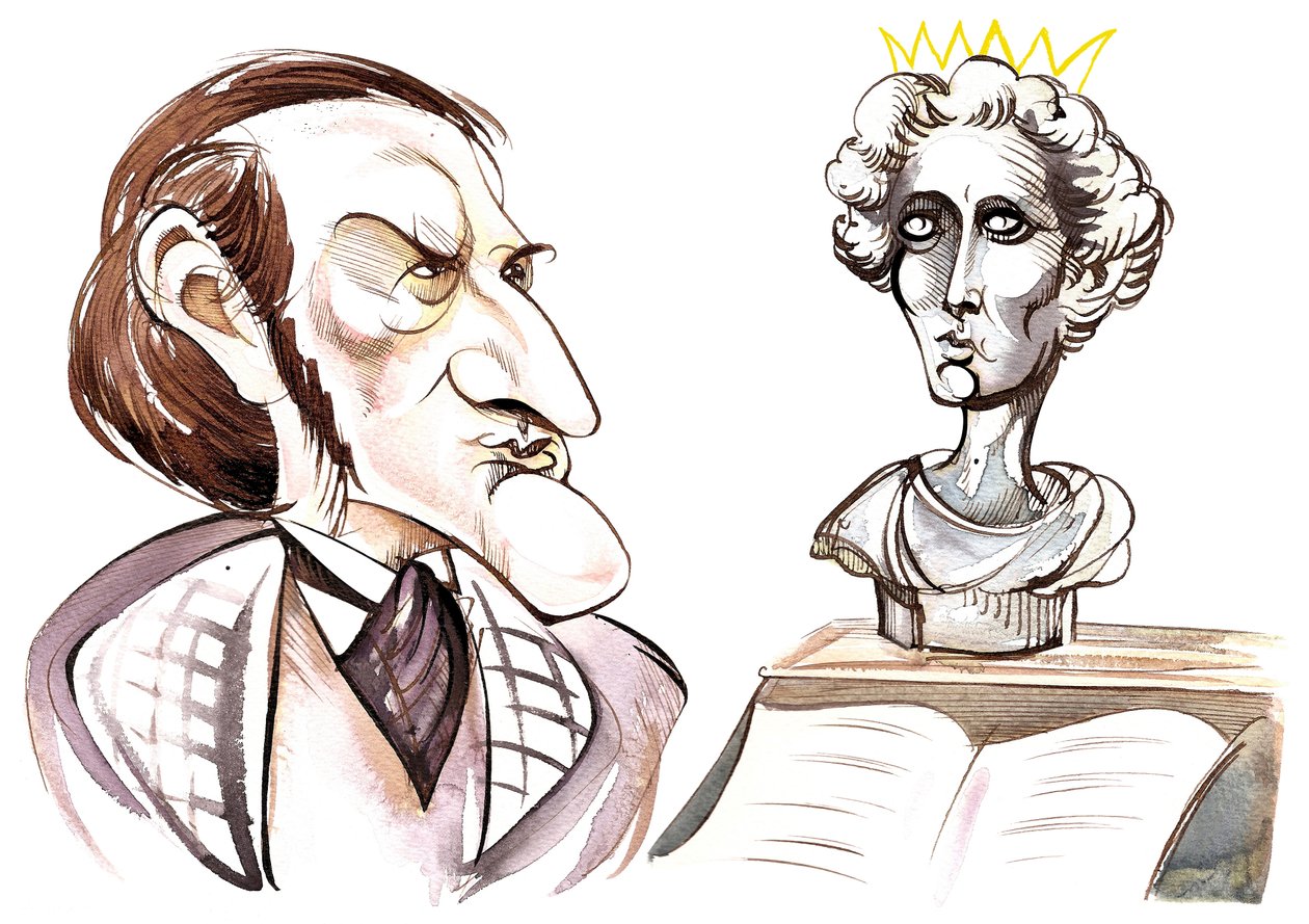 Richard Wagner - caricature with a bust of Mad King Ludwig II of Bavaria(Richard Wagner - caricature of German composer with a bust of Mad King Ludwig II of Bavaria (1845-86))Neale Osborne |