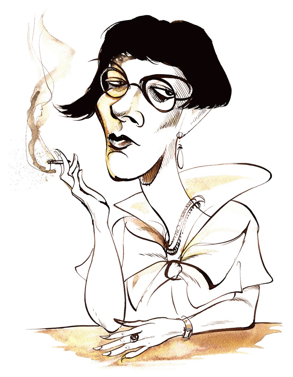 20th century · female · novelist · smoking · caricatures · drawing · poets · novelists · writer · british · writers · twentieth · cigarette · woman · drawings · poetry · poet · illustrations · author · caricature · literary arts · novel · literature · cigarettes · english · authors · illustration · Private Collection / Bridgeman Images
