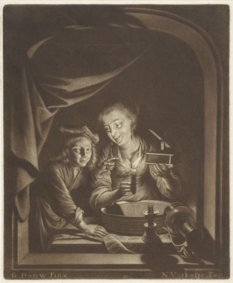 Mousetrap(Muizenval)Nicolaas Verkolje(print maker),Gerrit Dou(after painting by) |