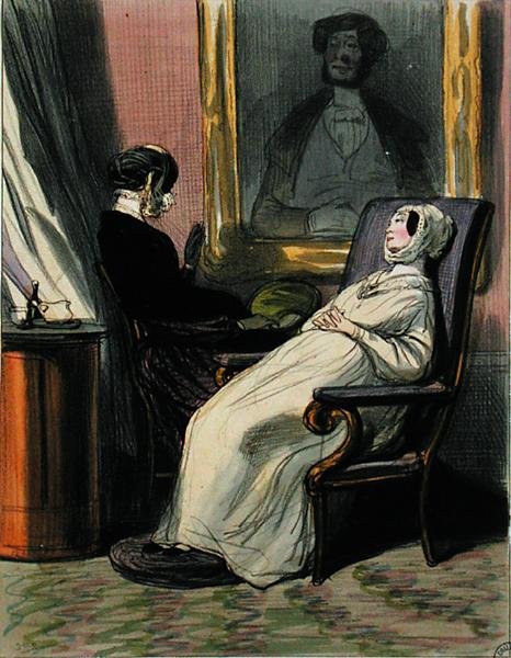 Pregnant Woman with Her Mother(Pregnant woman with her mother (colour litho))Paul Gavarni |