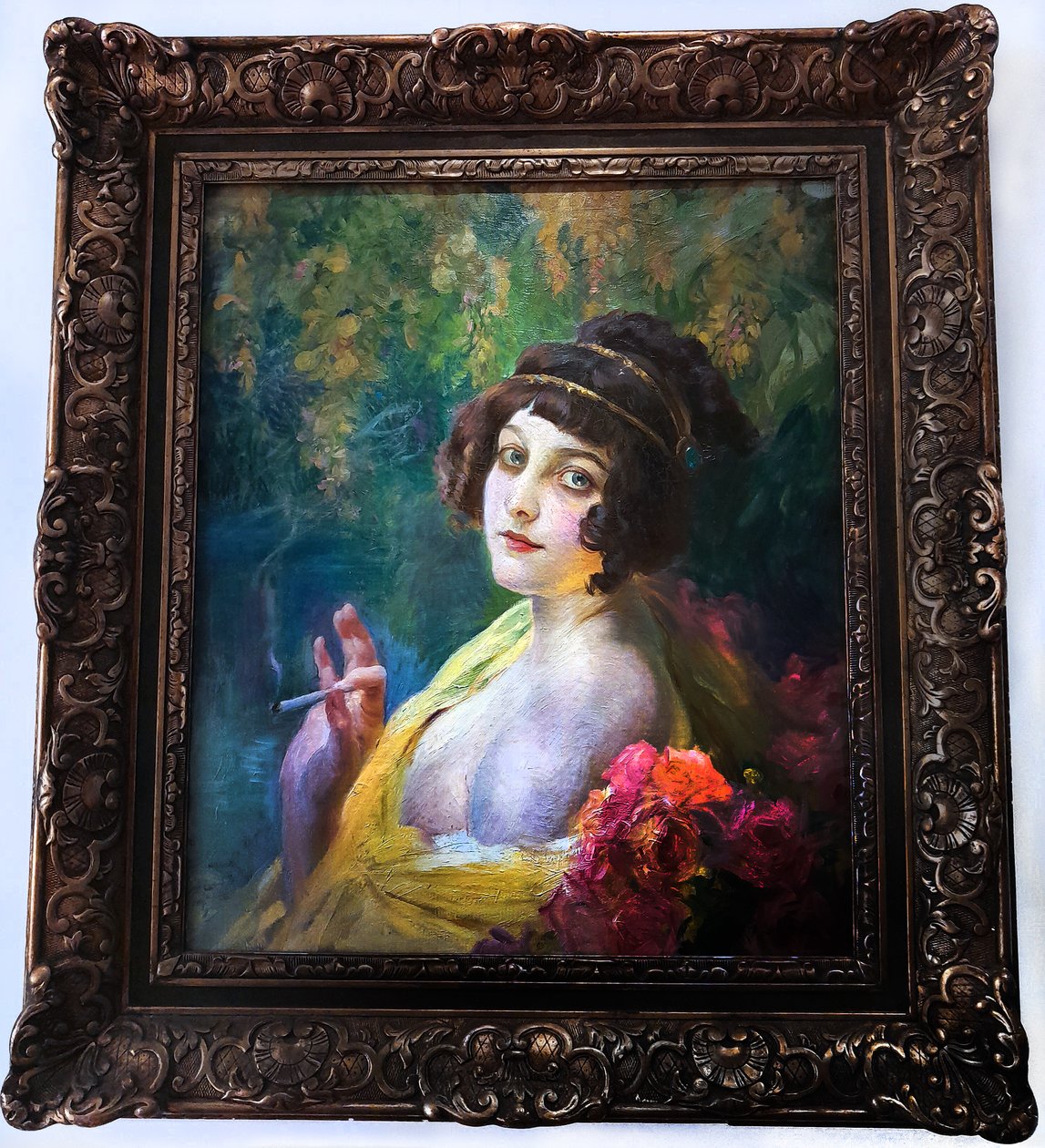 années 1900 · 20ème siècle · cigarette · tabac · coiffure · couleur · femme · france · europe · fumer · jeunesse · peinture · portrait · peinture à l'huile · regarder dans les yeux · · Musee Hyacinthe Rigaud, Perpignan, France / Bridgeman Images |