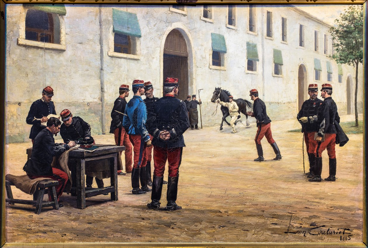 19th century · architecture · army · barracks · horse · animal · colour · painting · uniform · clothes · soldier · oil painting · mzpainting · · / Bridgeman Images |