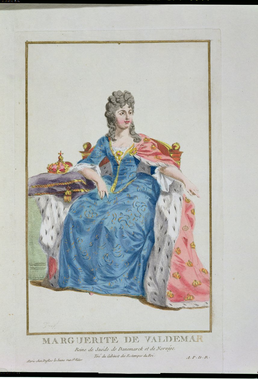 Margaret (1353-1412) Queen of Denmark, Norway and Sweden, from 'Receuil des Estampes, representant les Rangs et les Dignites, suivant le Costume de toutes les Nations existantes', published 1780(Margaret (1353-1412) Queen of Denmark, Norway and Sweden, from 'Receuil des Estampes, representant les Rangs et les Dignites, suivant le Costume de toutes les Nations existantes', published 1780 (hand)Pierre Duflos |