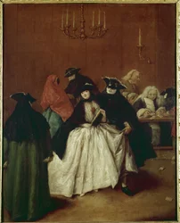 Il Ridotto (The Private Room of Palazzo San Moise, Venice)(Il Ridotto (the private room of Palazzo San Moise, Venice) or mask a reduto (Il ridotto o Maschere a 'Reduto') - Painting by Pietro Longhi (1702-1785), oil on canvas, 61x49 cm, circa 1760. Venezia, Fondazione Querini Stampalia)Pietro Longhi |