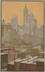 city · urban · building · office · landmark · architecture · arts · new york · new york city · manhattan · skyscraper · country · color · washington · rooftop · rooftops · roof · text · location · century · gallery · art deco · print · printing · manhattan island · new york state · offset · art gallery · titled · united states of america · colour · national gallery of art · 1910s · 20th century · beaux-arts · lithograph · american · america · lithography · half-tone reproduction · building exterior · lithograph · postcard · united states · ernest · flagg · art centre · lithotint · heritage art · print · halftone offset lithograph · rachael robinson elmer · elmer · rachael robinson · rachel robinson elmer · singer building · ernest flagg · Heritage Art/Heritage Images
