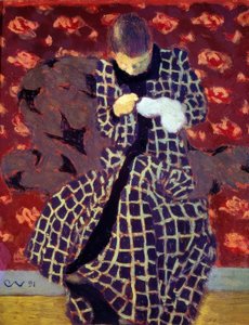 female · seated · portrait · three-quarter length · fur coat · winter · snow · snowing · snowy · park bench · village · town · exterior · cold · contemplation · solitary · solitude · solitude · naive · Private Collection / Bridgeman Images |