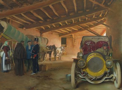 transport · interior · automobile · vehicle · vehicles · horses · horse · architecture · painting · spain · stagecoach · carriage · carriages · tyres · tires · diligence · realism · motor car · staging · coach house · oil on canvas · genre · private collection · architecture · interior · genre · casas · ramon 1866-1932 · casas · ramon 1866-1932 · carriage house · remise · Fine Art Images/Heritage Images