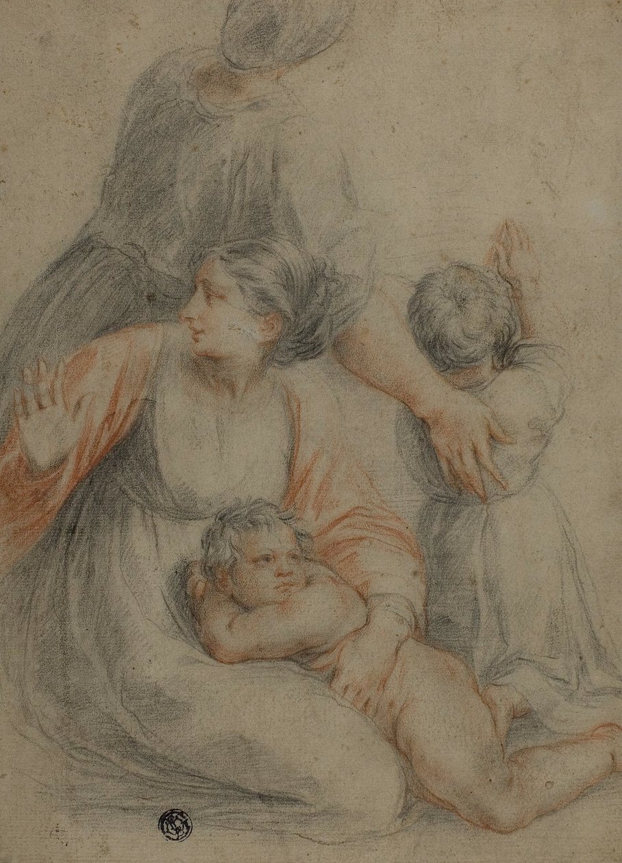 Undated · Red and black chalk on tan laid paper, laid down on ivory laid board
