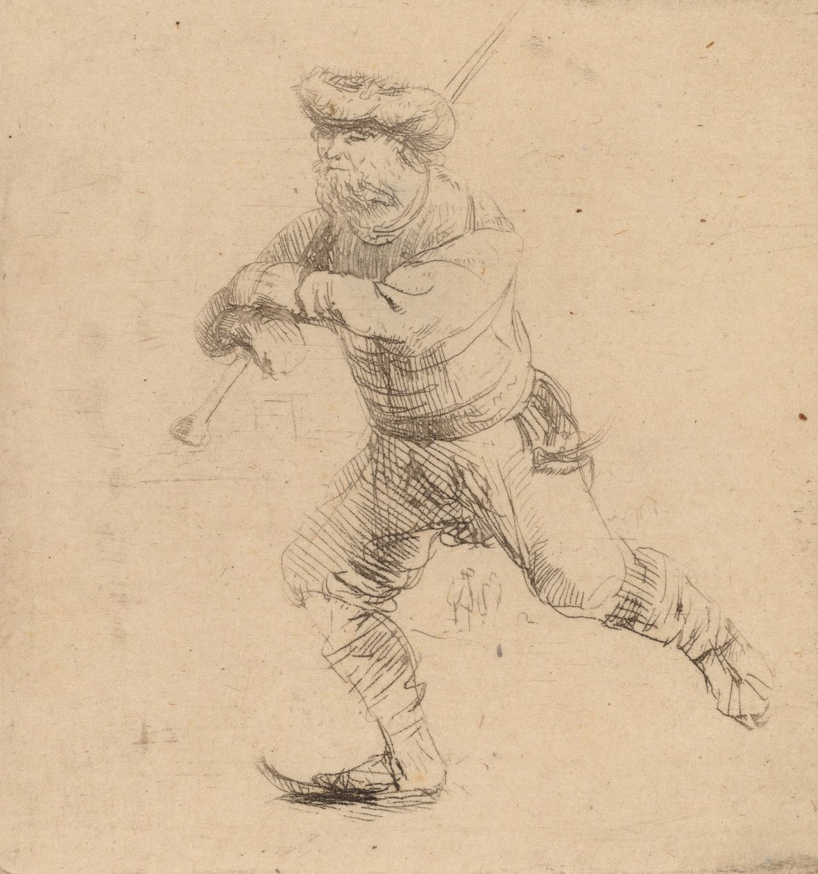 leisure · carrying · people · male · footwear · shoes · arts · clothes · balance · netherlands · dutch · pole · washington · dress · century · gallery · shoe · clothing · print · ice skater · concept · ice skating · pastime · one person · snowshoe · snow shoe · posture · snowshoes · 17th century · art gallery · carrying on shoulders · black white · black and white · golden age · national gallery of art · seventeenth century · etching · etching · portrait · rembrandt harmensz van rijn · rembrant van rijn · rembrandt harmenszoon van rijn · rembrandt · standing on one leg · dutch golden age · art centre · rembrandt van rijn · heritage art · print · etching and drypoint · van ryn · paul rembrandt · rijn · rembrandt harmensz van · paul rembrandt van ryn · low countries · Heritage Art/Heritage Images