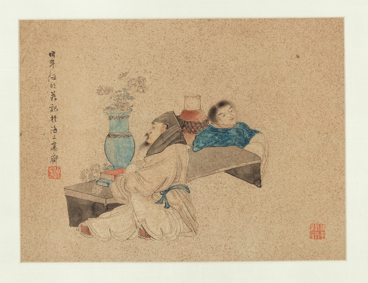 Undated · Hanging scroll, ink and color on gold flecked paper, rhinohorn roller
