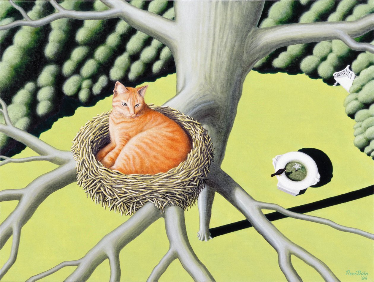 animal · 1990s · 20th century · tree · contemporary art · bench · colour · drawing · fountain · unreal · fantasy · nest · bird · park · landscape · nobody · vegetation · bird's eye view · balstudio · outside · mzdrawing · contemporary artist · · / Bridgeman Images |