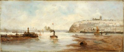 1900s · 20th century · boat · transport · steamboat · colour · pier · port · united kingdom · europe · coast · ship · wales · painting · lighthouse · oil painting · mzpainting · seascape · Cardiff · · Amgueddfa Cymru – Museum Wales / Bridgeman Images