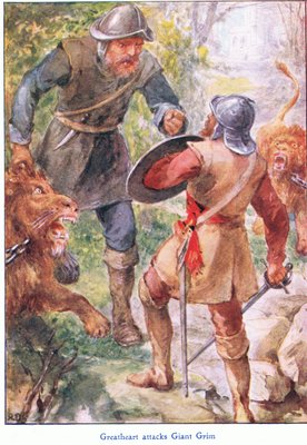 Great Heart Attacks Giant Grim, from The Pilgrims Progress(Great Heart attacks Giant Grim, from The Pilgrims Progress published by John F Shaw & Co, c.1900's (colour litho))Robert Ambrose Dudley |