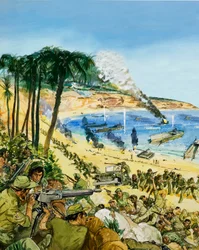 20th century · 1960s · disaster · communism · cuba · central america · america (continent) · drawing · north america · cold war (1947-1991) · history · invasion · painting · soldier · mzdrawing · illustration · military campaign · payne roger (b.1934) · illustrator · castro fidel (1926-2016) · politician · · / Bridgeman Images · / Look and Learn