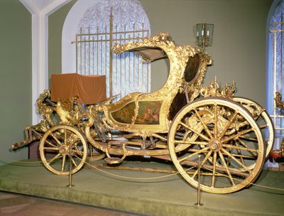 Berlin Carriage of Empress Catherine II(Berlin carriage of Empress Catherine II, wood, embossed bronze, carving and gilding on gesso ground, painted panels, St. Petersburg, 1769)Russian School |
