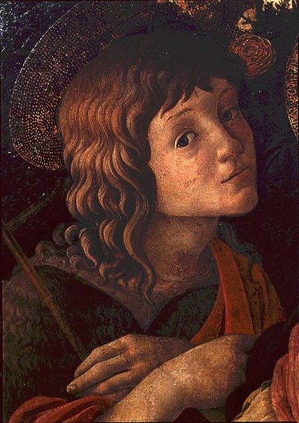 Madonna and Child with St. John the Baptist (detail)(Madonna and Child with St. John the Baptist, detail of the young saint)Sandro Botticelli |