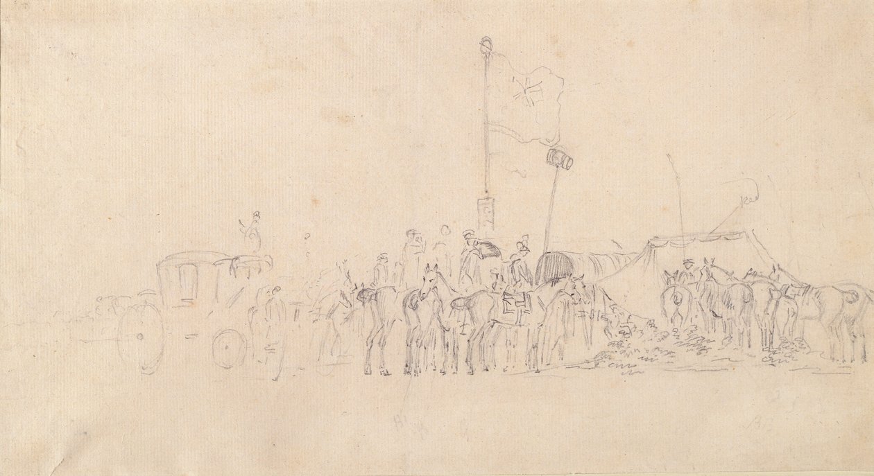 A Gathering of horsemen with coach, tents and flags(A Gathering of horsemen with coach, tents and flags (graphite on paper))Sawrey Gilpin |