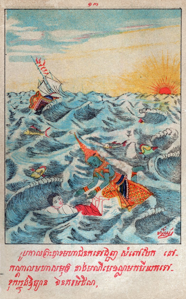 Mahajanaka Jataka (engraving, ca. 1910)(Mahajanaka Jataka. (engraving, ca. 1910))School Laotian |